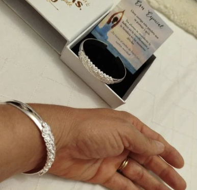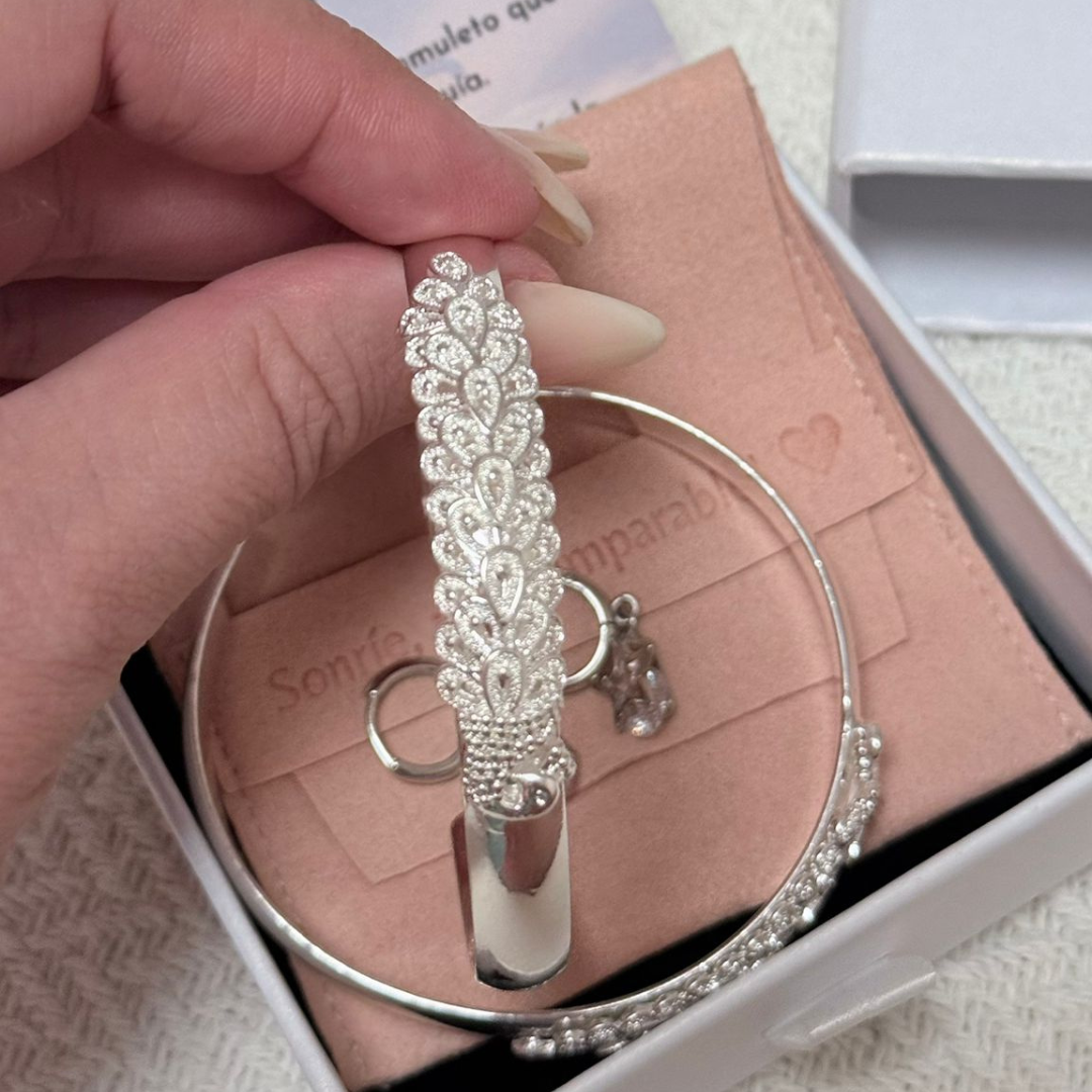 La pulsera es aún más bonita en persona. Tiene un acabado muy fino y los detalles tallados se ven espectaculares. Me encantó la presentación, se nota que lo preparan con mimo. 😍