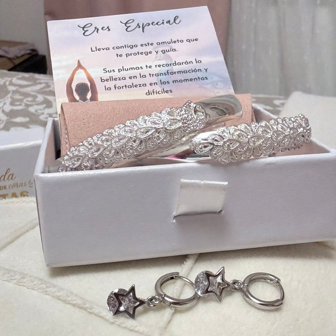 Cada detalle de este pack ha sido creado para recordarte lo especial que eres. Las pulseras, talladas a mano con delicadeza y amor, reflejan la luz con cada movimiento, simbolizando tu fortaleza y autenticidad.