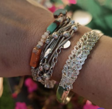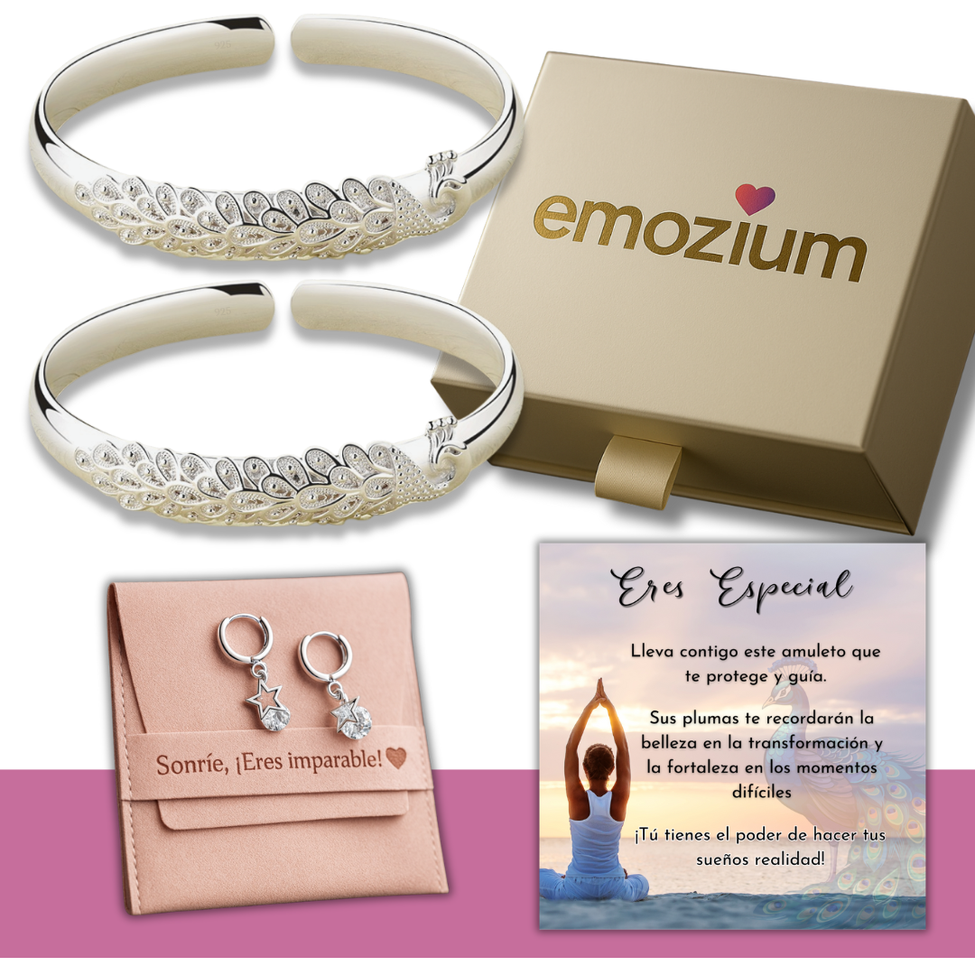 Un brazalete único inspirado en la majestuosidad del pavo real. Su diseño elegante y detallado refleja sofisticación y estilo en cada ocasión.